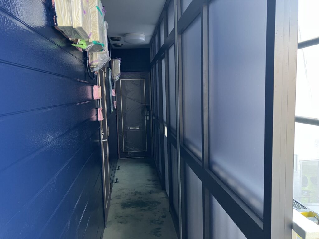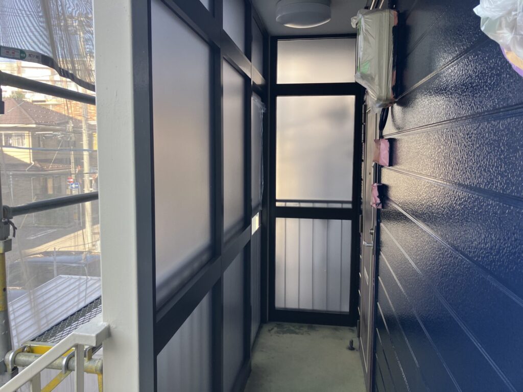 以前からお付き合いさせて頂いているお客様からのご依頼でアパートの塗装工事を行わせて頂きましたが、その際玄関ドアの交換、木製の風除室をアルミ風除室への交換のご依頼を頂きました。