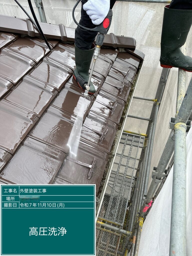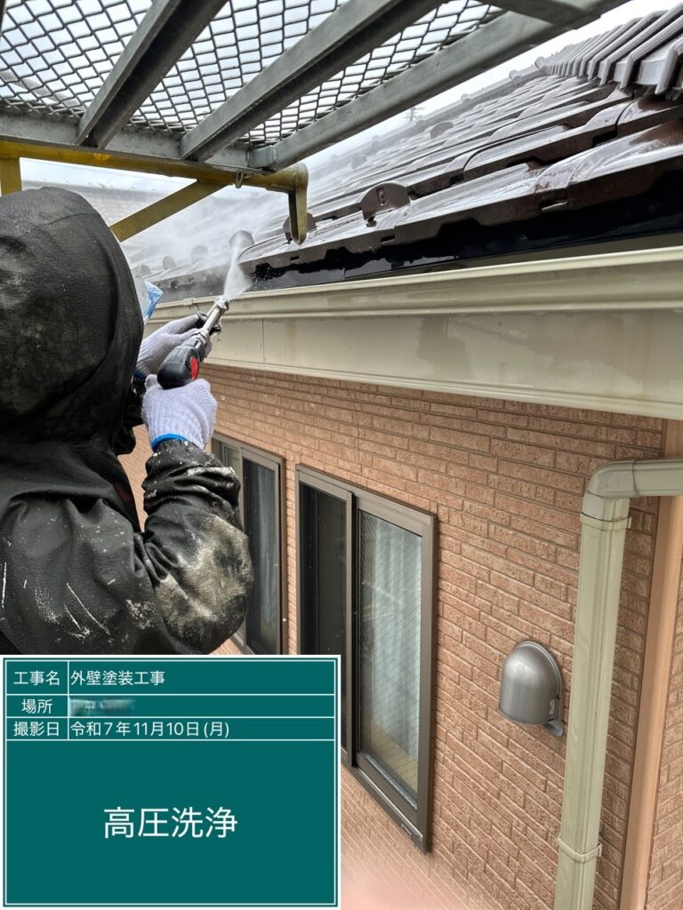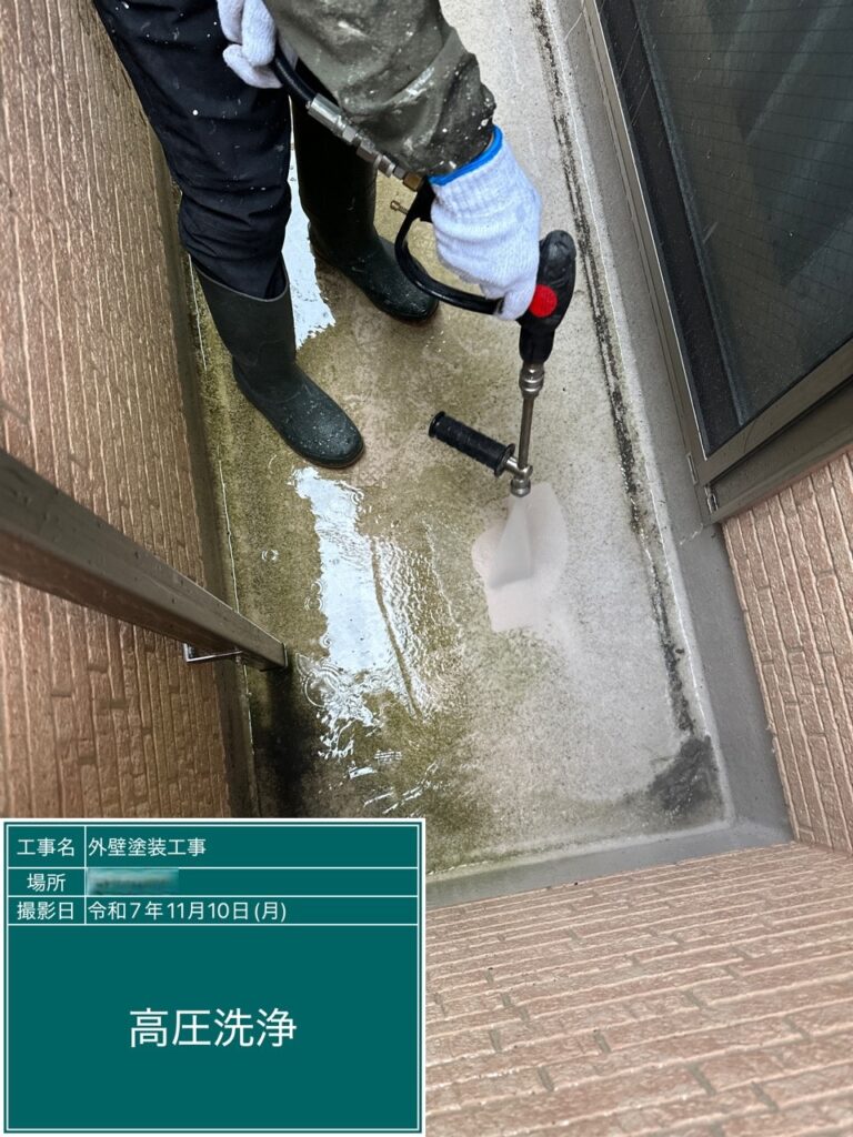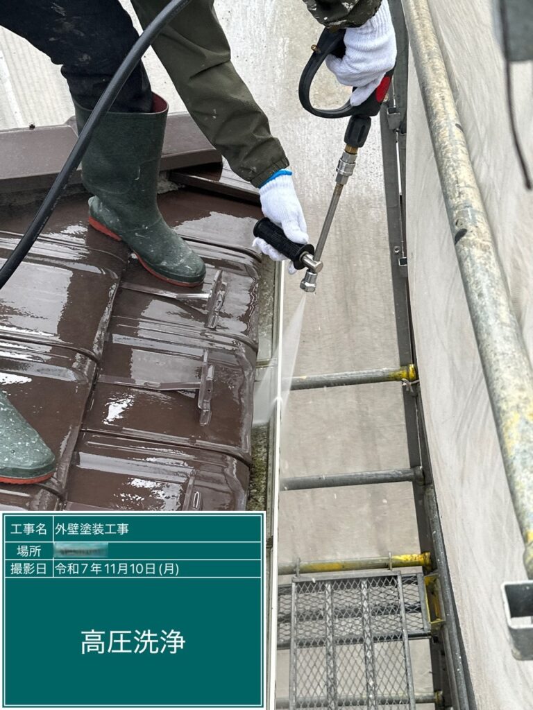 工程ですが、今回は一番最初に行う高圧洗浄作業をご紹介します。