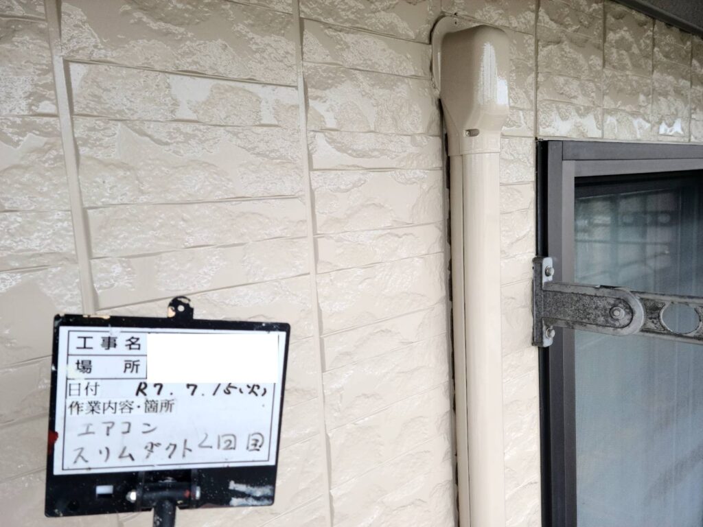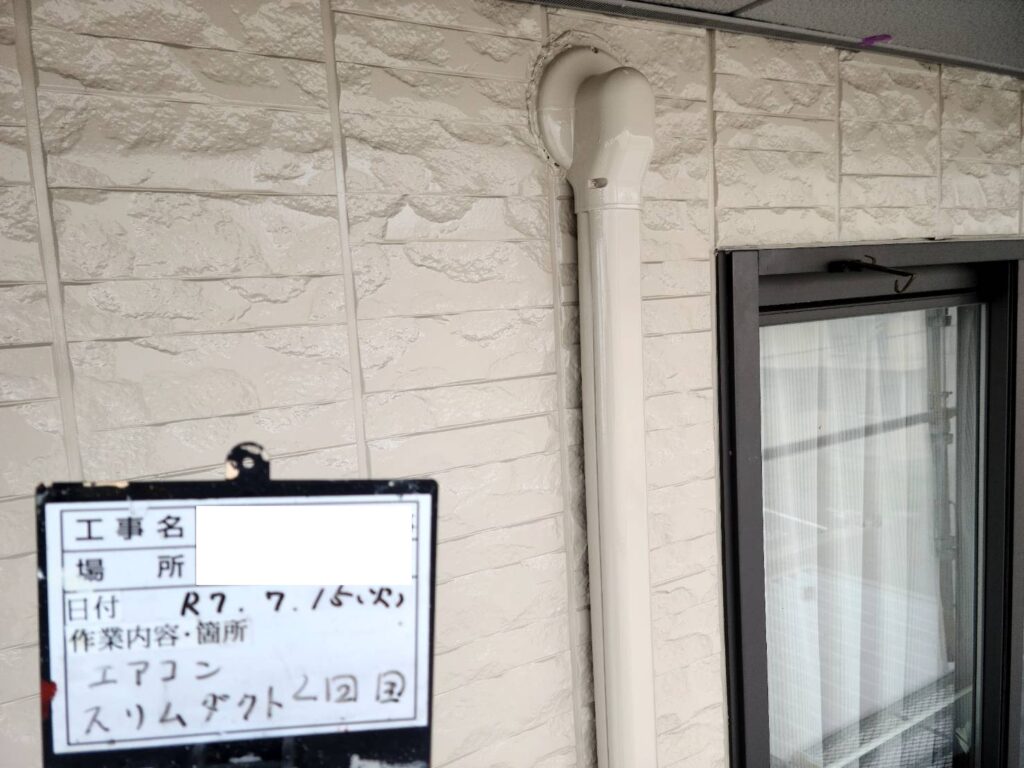 エアコンのスリムダクトも外壁の色に合わせて塗装しました。