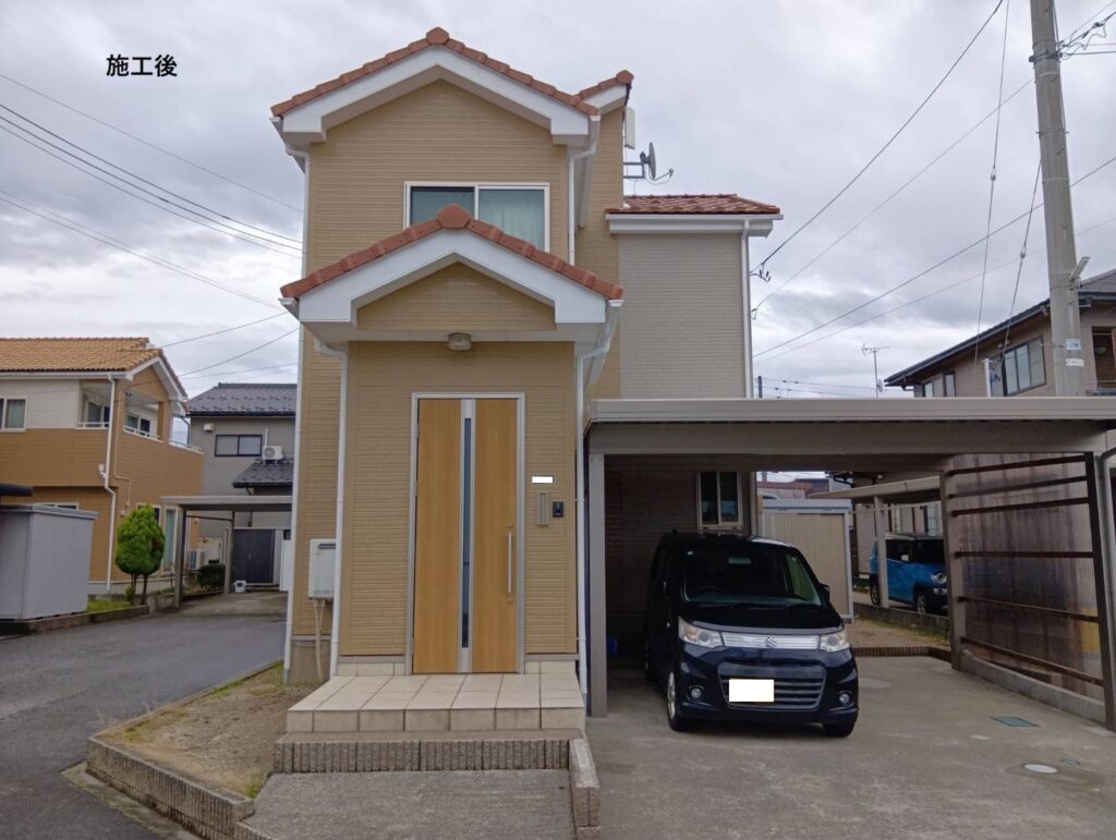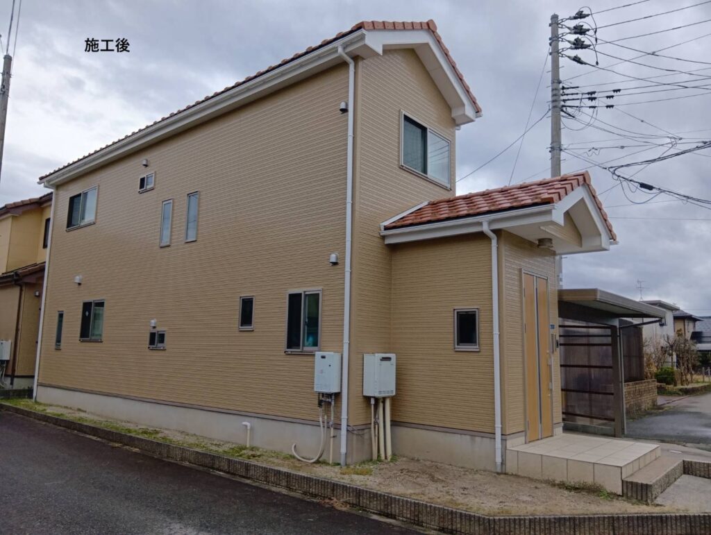 メインの外壁をブラウン、アクセントの外壁をベージュで塗装し、更にお洒落な仕上がりになりました✨