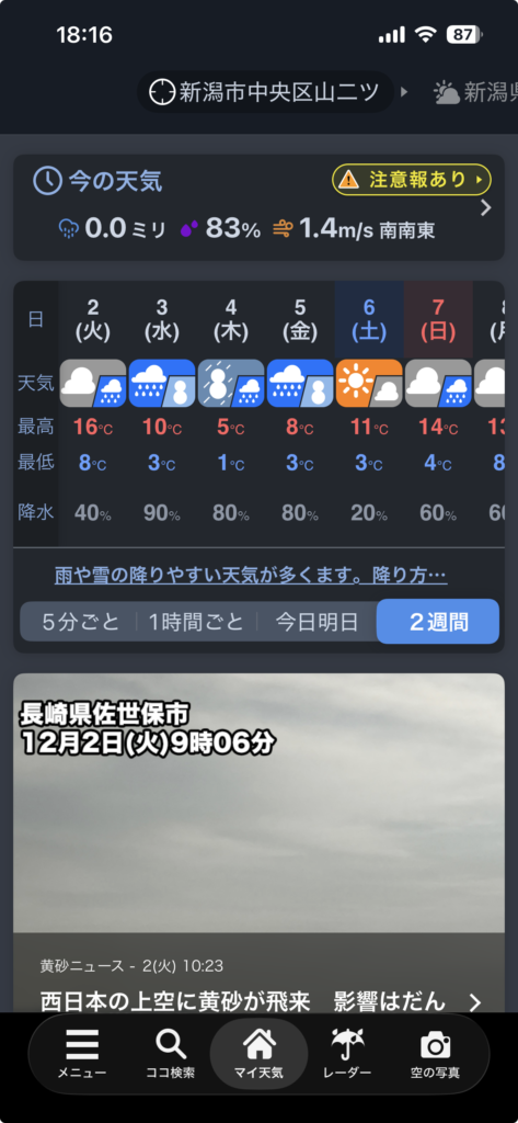 12月に入りついに新潟市は天気予報に雪マークが付きました。